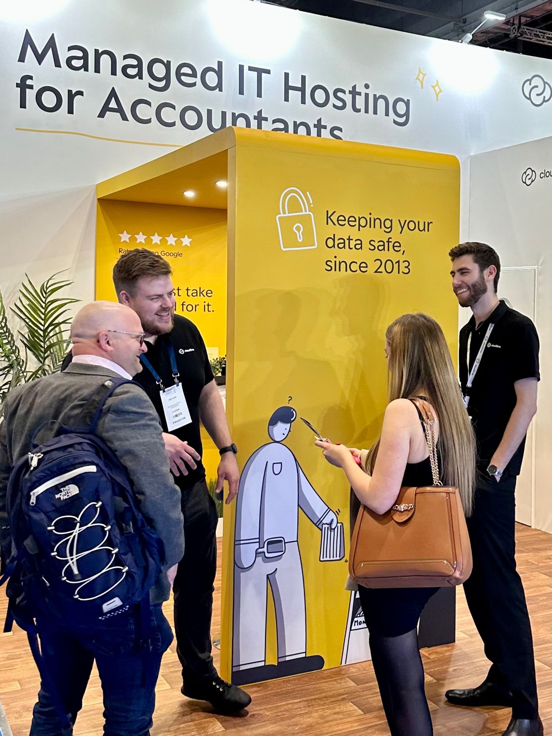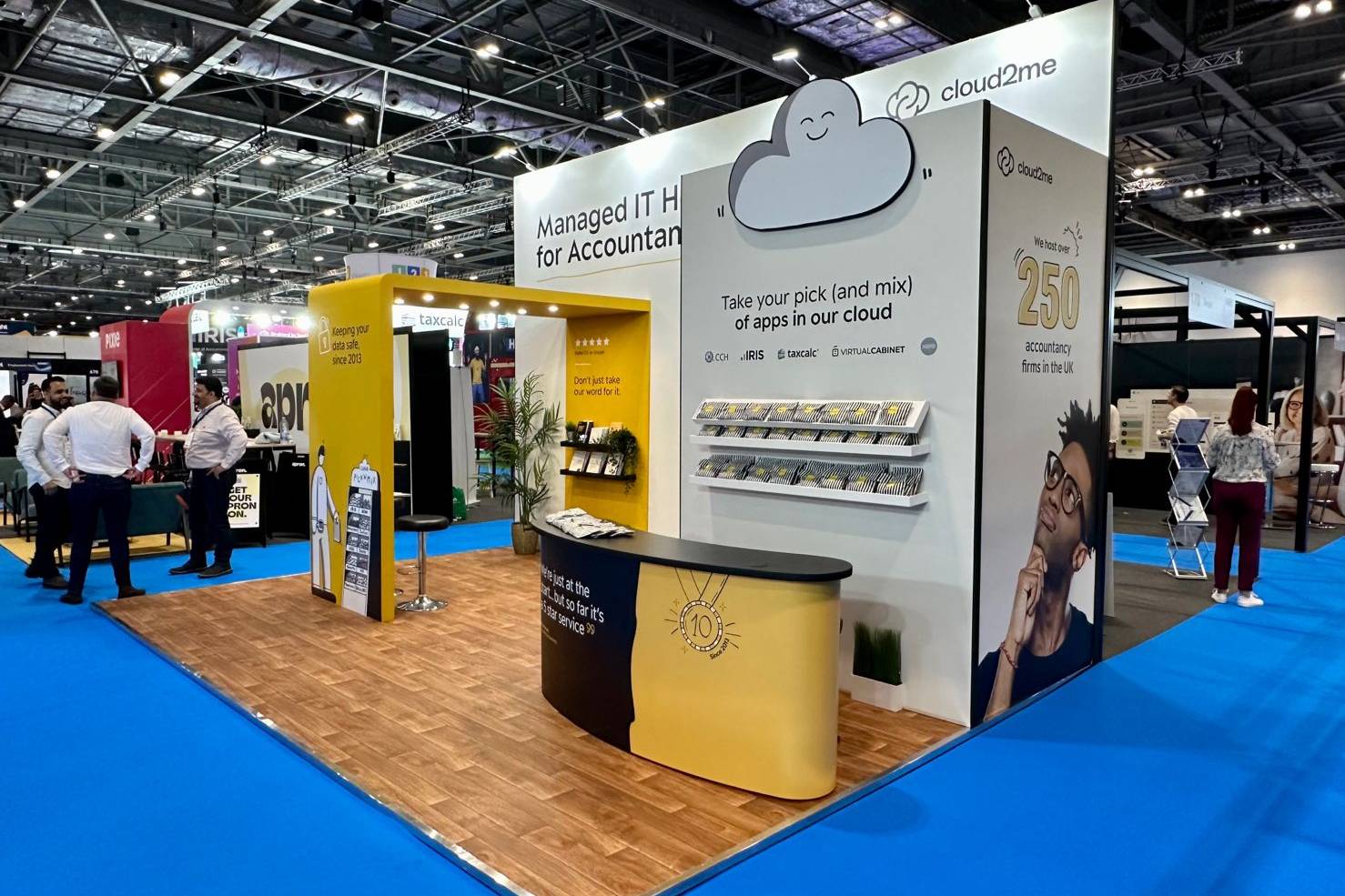 they were initially presented with a stand design from the manufacturer. It was fine but it didn’t convey the approach Cloud2me wanted to get across so they came to us. Through asking the right questions we were able to create a theme via the messaging (which we also came up with), and then tied those in with merch they wanted to give away. Tying in all brand elements too. basically need to convey that stand builders are not necessarily the best designers, this is where having brand experts can better your presence with messaging etc.