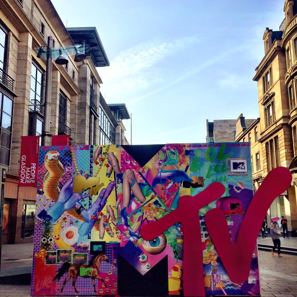 Collaborating alongside the incredibly talented team at Me, Him & Co., Visual Etiquette took on the exciting challenge of crafting captivating artwork for an expansive interactive stand designed for MTV Bump. This remarkable installation stood tall and commanded attention in the heart of a bustling square on Buchanan St. in Glasgow. Enveloping visitors in a sensory spectacle, they were irresistibly drawn to the vibrant and diverse aesthetic of MTV Bump graphics, magnificently showcased on a colossal physical MTV logo, making a resounding visual impact.