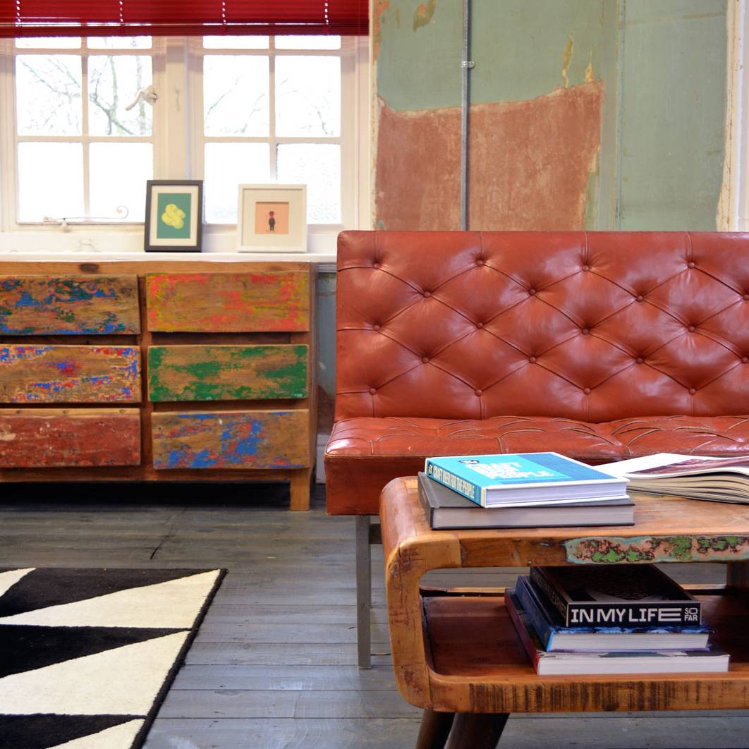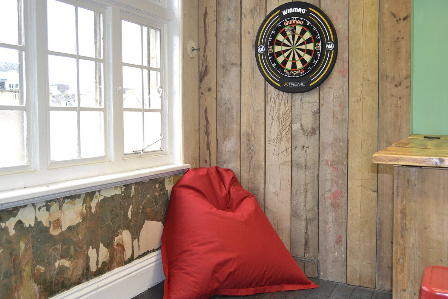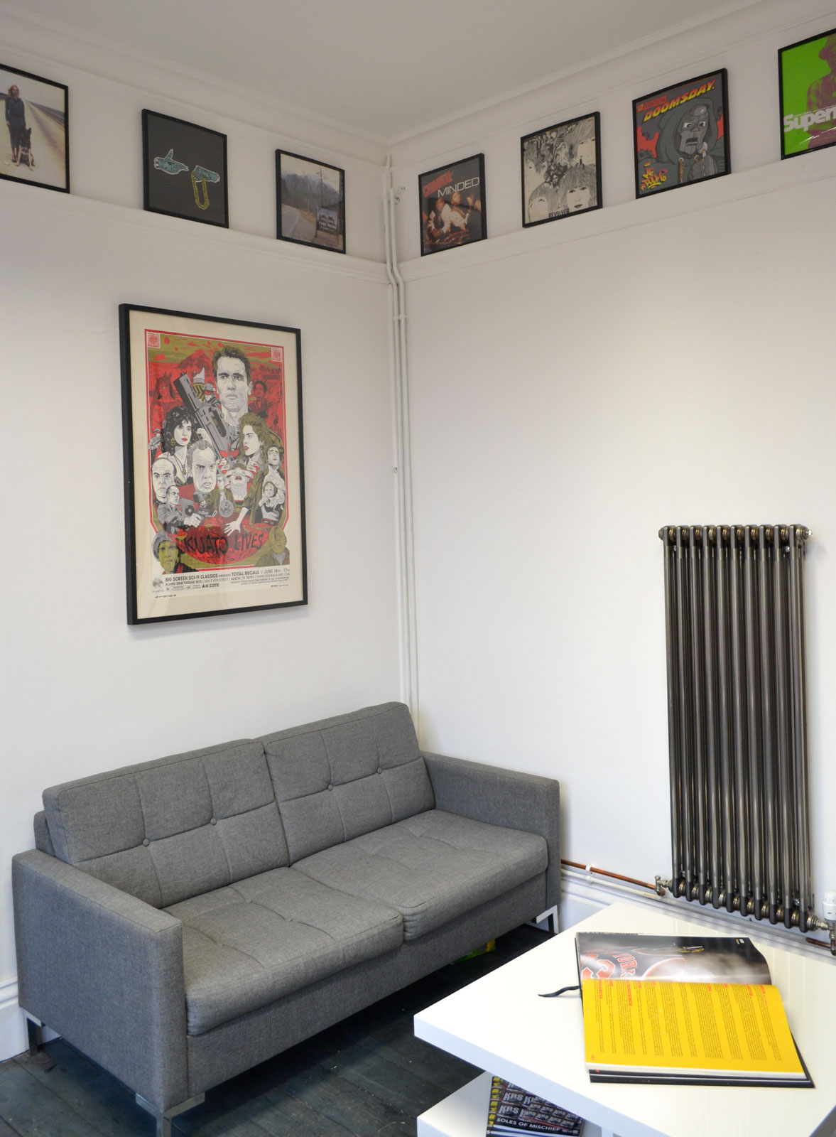 We couldn’t practice what we preach now could we… Built in 1913 by Alan Ruddle, we made our own mark on this Grade II listed building by removing all the freshly laid corporate carpet tiles and magnolia chipboard wallpaper (thanks Mr Landlord), stripping it back to some of it’s original features. Working with a tight timescale and budget, we sourced a variety of furnishings from drawers made of Indonesian boat wood (a joy to finagle up 5 flights of a tight staircase) to vintage sofas which allowed us to spend more on custom shelving, a scaffold board bar and darts area and radiators.